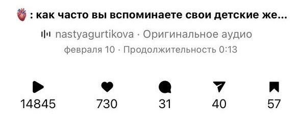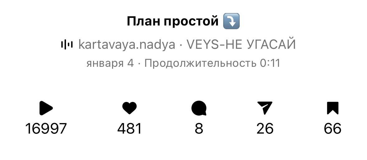 у меня было снято больше 100 рилс, ни один не залетал, я думала, что со мной что‑то не так, пока однажды Лера не донесла мне одну важную мысль, которая сделала 50% моего результата: «там где фокус, там результат», не может не вырасти то, куда ты отдаёшь своё вниманиею